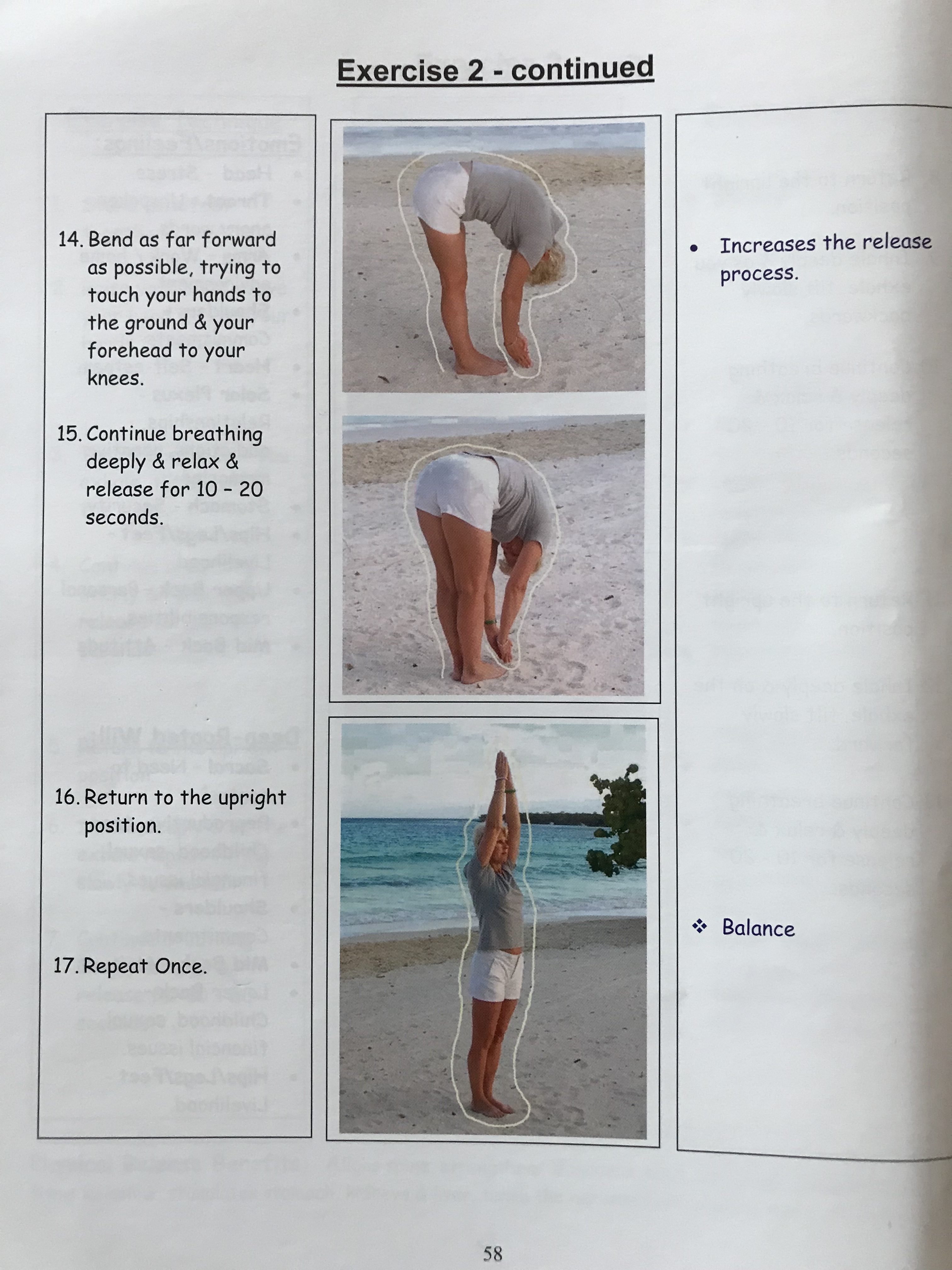 As you’re breathing through each 10-second position, you’ll feel your muscles relaxing. When this occurs, stretch just a wee bit further and continue breathing deeply through the count of 10.